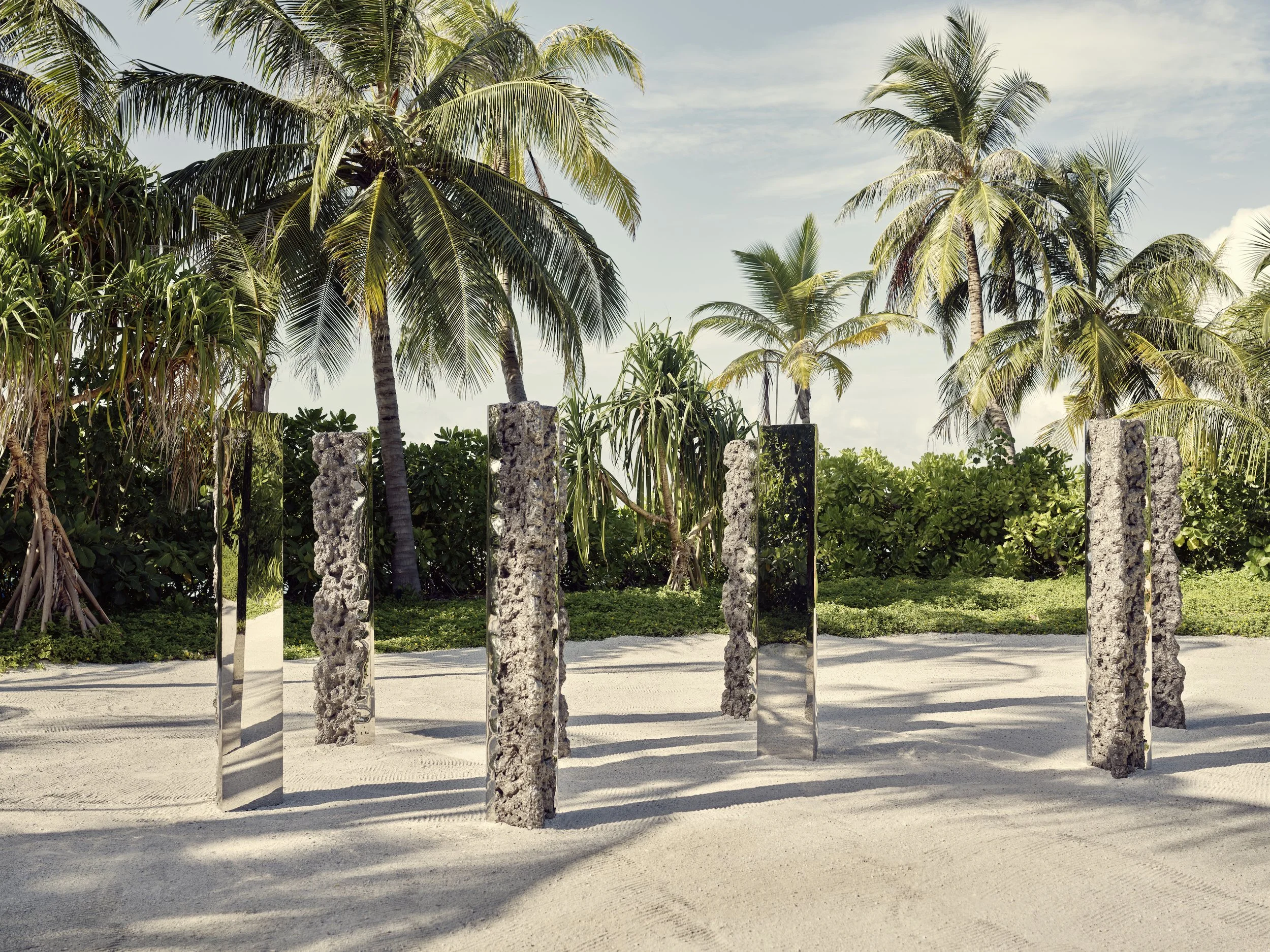 The Artling partnered with Studio MK27 and VDLA to conceptualise and deliver an inspiring collection of 220 works across Patina Maldives’ 90 villas and public spaces. Bespoke commissions include Synthesis Monoliths by Hongjie Yang,Momento by FAHR 021.3, and Palms by Cássio Vasconcellos. The curated collection reflects the unique natural setting of the Fari Islands, with artworks that interact with the surrounding landscapes and ocean.
