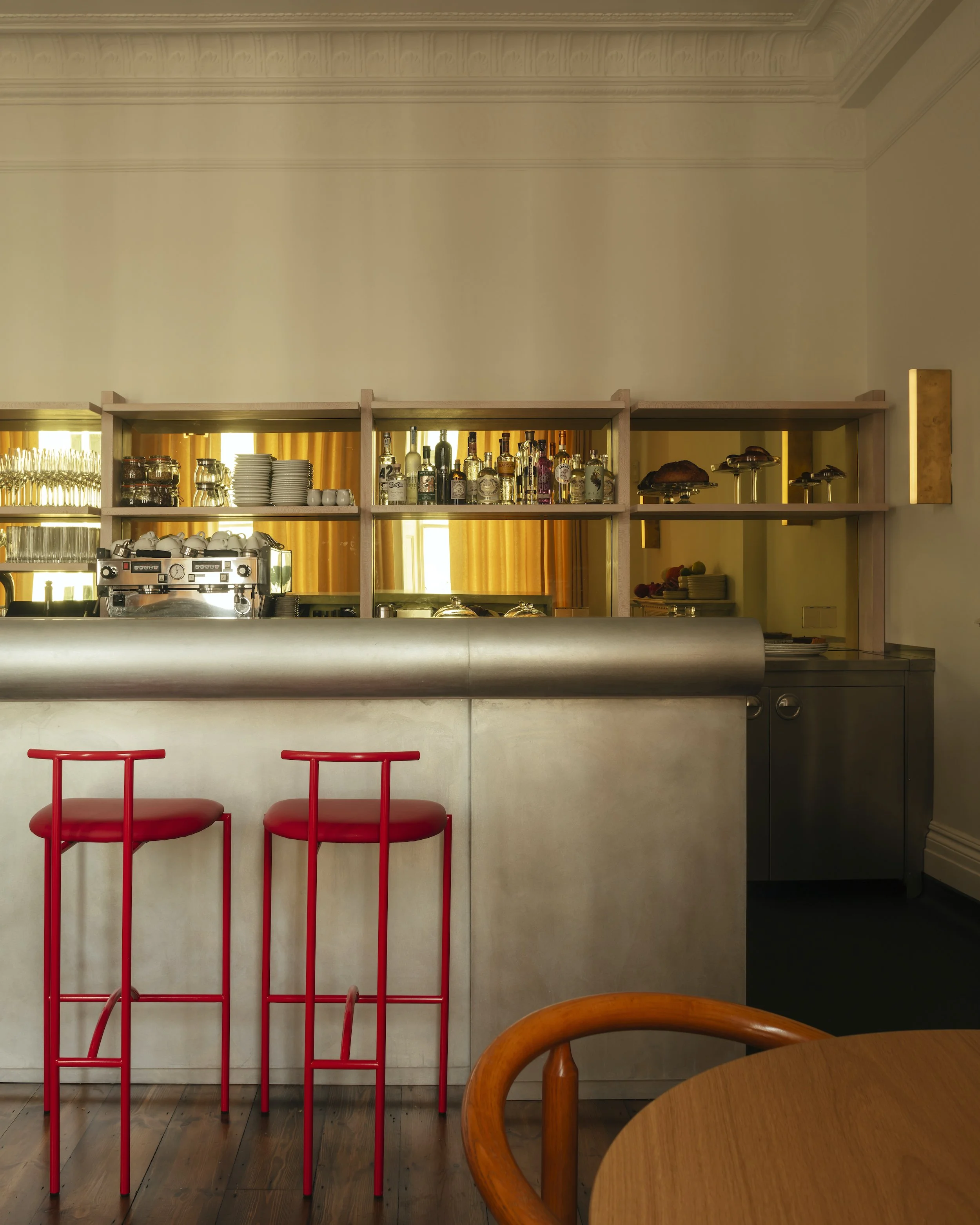 The Lavery’s interiors are a masterclass in quiet elegance. Designed in collaboration with Daytrip Studio, the mood is warm and timeless, with heritage details—ornate plasterwork, baroque mirrors, timber handrails, and ironwork balustrades—meticulously preserved. Period features frame the experience, while carefully sourced design pieces from 20th-century institutions such as the Hotel Excelsior Venice, The Groucho Club, and La Chaux-de-Fonds provide layered texture and history. A custom zinc bar acts as the anchor of the space, inviting guests into a dining room that moves effortlessly from daytime light to evening intimacy.