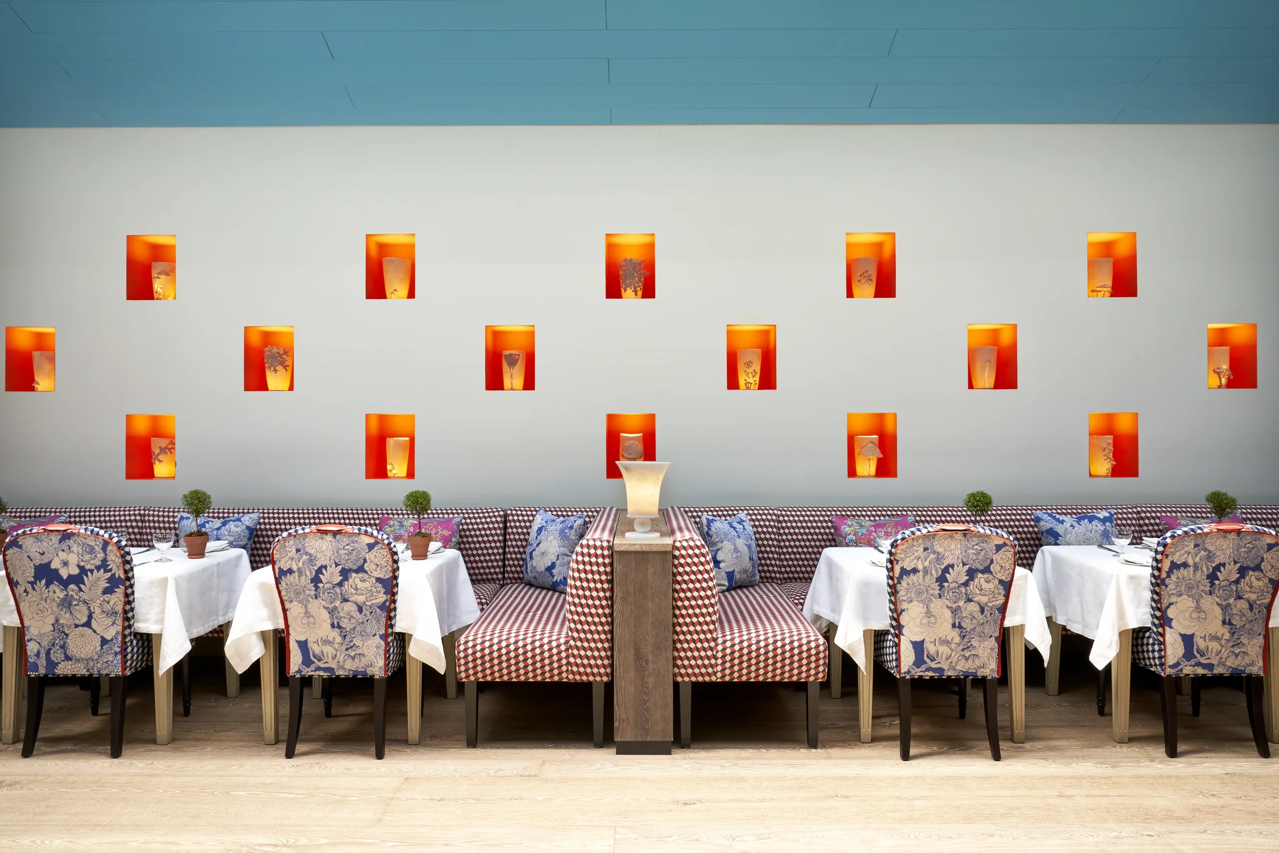 The public spaces are equally compelling. The Orangery, for example, is an architectural marvel filled with natural light, serving as both a dining destination and an immersive design showcase. The use of playful details—such as sculptural lighting, patterned flooring, and hand-finished furniture—underscores Kemp’s commitment to creating environments that feel alive.