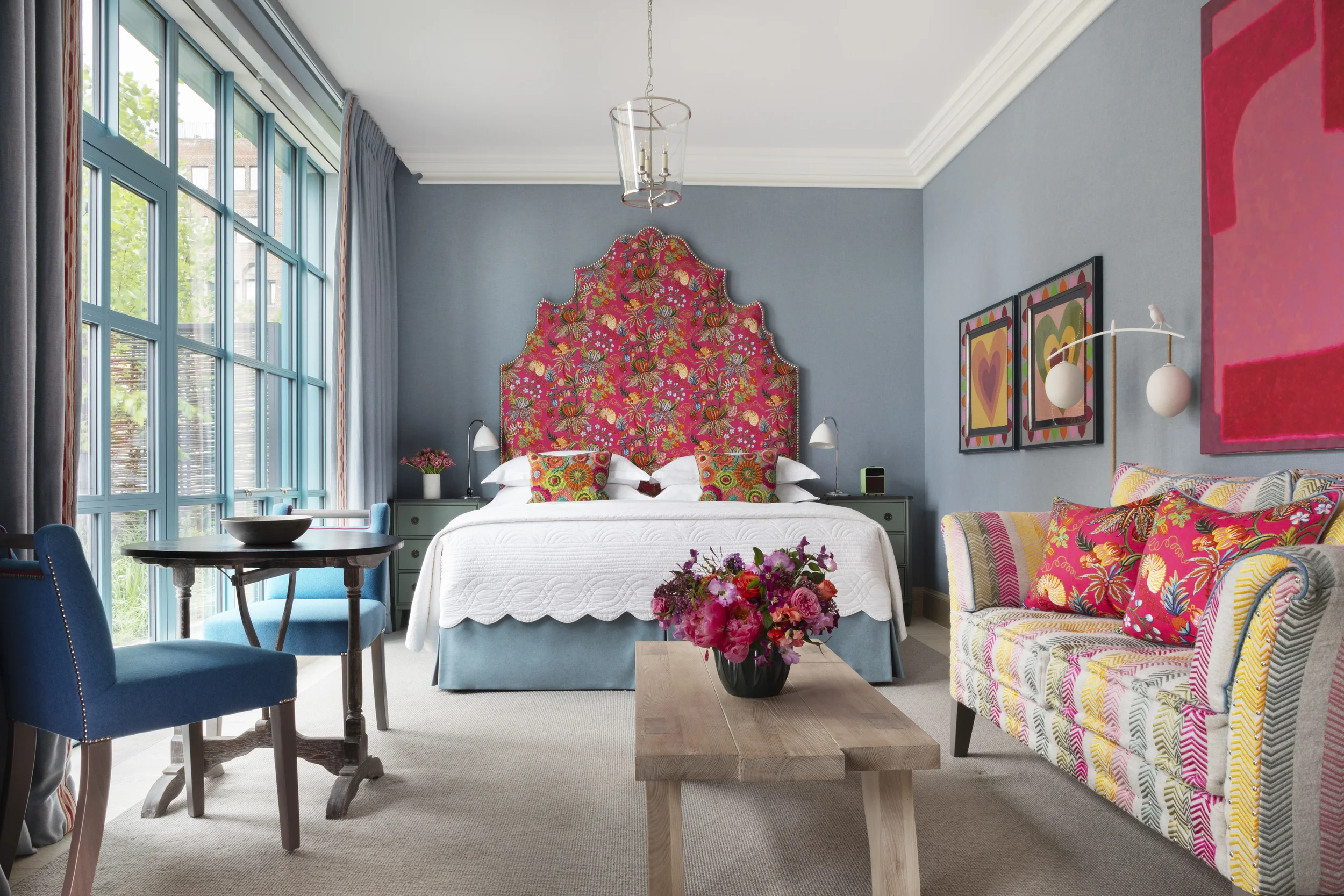 The building itself—a striking new development—provides a canvas for Kemp’s vision. Inside, the hotel features 69 individually designed bedrooms and suites, each brimming with character. Bold wallpapers, bespoke textiles, and art commissions transform every room into a unique experience. No two spaces are the same, encouraging repeat visits and offering guests the sense that they are staying in a curated home rather than a commercial hotel