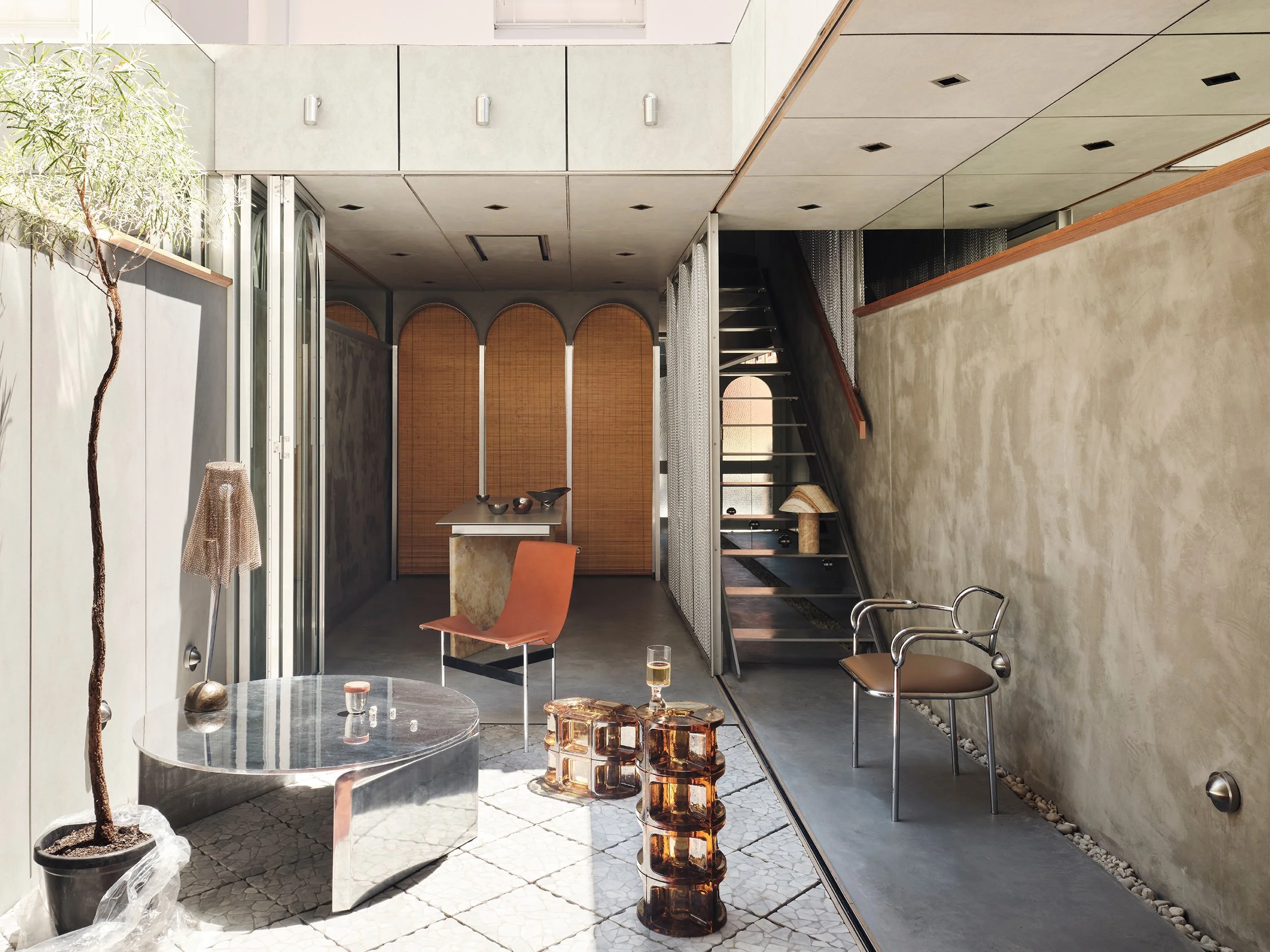 Styling credits: 1.kitchen Ceramic bowl via Grandfather’s Axe. Glasses by Studio Dokola via Craft Victoria 2. bottom left,cast bonze Sia Chair by Tom Fereday. Painting by David Serisier from Liverpool Street Gallery. Mano Glass Sculptures & Cove Polished Aluminium Coffee table by Tom Fereday. Dice cup & dice from Georg Jensen. Glass by Joe Colombo, Katavolost T-chair, Chain mail lamp & Magistretti’s Vicario red chair, Med Resin Vase, Ponti Pipes Vase, Guzzini Faro Lamp and Asti Red Ashtray, all via via 506070. Flor Toio Lamp via Euroluce. Stainless Steel sculpture by Christopher Hodges via Utopia Art. Marco Terra Rug via The Rug Establishment.